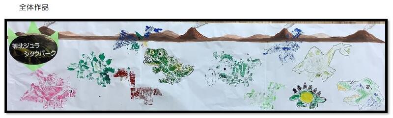 苓北支援学校高等部の生徒は、4月25日(月)~4月28日(木)の4日間で、「苓北ジュラシックパーク」と題し、恐竜をテーマにした段ボール版画の作品づくりに取り組みました。段ボールをちぎったり、表面を剥がしたりして、断面の凹凸を生かし、大小様々な大きさの段ボールを組み合わせるなど、素材の特徴を生かし、迫力のある個性豊かな作品を作り上げることができました。個人作品と全体作品を制作し、個人作品は、天草市立御所浦白亜紀資料館主催の「恐竜絵画コンテスト」に応募する予定です。