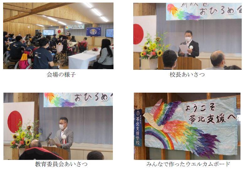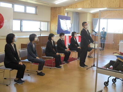 令和4年(2022年)6月13日(月)、本校の新校舎おひろめ会を開催しました。新型コロナウイルス感染症予防のため、規模を縮小しましたが、当日は、苓北町教育長様、社会福祉法人慈永会 副理事長様、はまゆう療育園園長様の他、熊本県教育庁特別支援教育課長、本校元校長、本校PTA会長に御参加いただきました。参加者みんなで新校舎の完成をお祝いしました。祝詞等をいただいた関係諸機関の皆様にも、心より感謝いたします。これからも、よろしくお願いします。