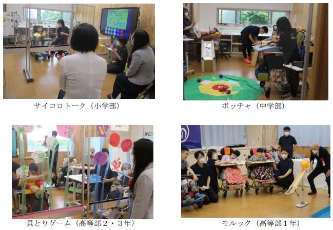 7月4日(月)、全校児童生徒が小・中・高の縦割りの3班に分かれ、ボッチャ大会を行いました。各班毎に投げる順番を決め、練習をした後に本番に臨みました。各児童生徒がスロープ等を使い得意な方法でボールを転がしたり投げたりしました。点数の箇所にボールが止まると、各班から嬉しそうな歓声が聞かれました。大会終了後には班毎に記念撮影をして楽しい一時を過ごすことができました。