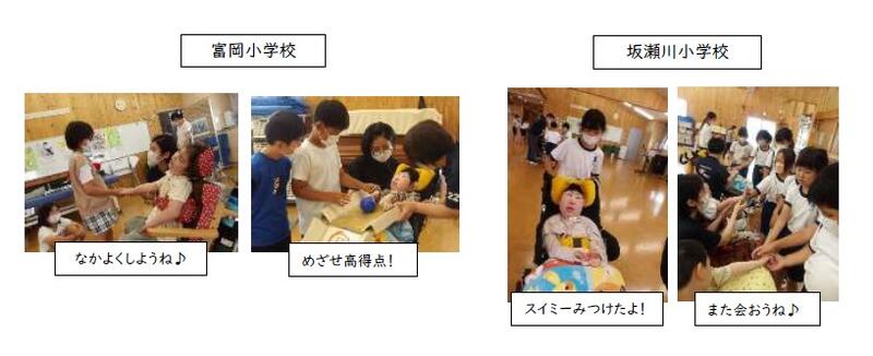 5月30日から6月12日の10日間で、生活単元学習「交流をしよう①」の学習に取り組みました。同じ苓北町内の小学校4校とそれぞれ交流及び共同学習を行い、当日はグループに別れて、ミニゲーム、ボッチャ大会をしました。はじめはお互いに緊張が見られましたが、一緒に活動していくうちに表情が和らぎ、ボッチャ大会では大いに盛り上がりました。お別れのときには淋しそうに涙を浮かべる児童も…。2学期にまた会おうね。