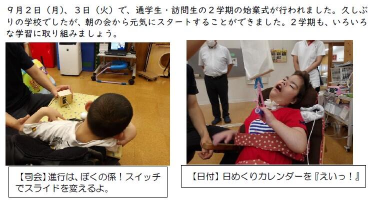 1月8日(水)に通学生と院内訪問生、10日(金)に自宅訪問生の始業式があり、みんな元気に3学期をスタートしました。始業式の中で3学期の授業日は、通学生と院内訪問生は50日、自宅訪問生は18日と校長先生よりお話があり、授業日の少なさにみんな驚いているようでした。一日一日を大切にし、充実した学校生活を過ごすことができるよう、3学期も取り組んでいきたいと思います。今年もどうぞよろしくお願いいたします。