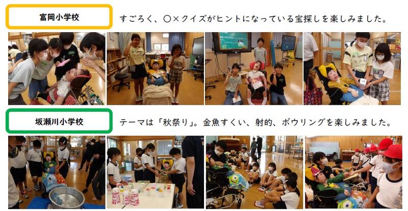 10月は生活単元学習「交流をしよう②」の学習に取り組み、1学期と同様に、苓北町内の小学校4校と交流及び共同学習を実施しました。1学期の交流を踏まえて、2学期は交流校の児童が活動内容を考えました。どんな活動だと一緒に楽しめるか、どんな仕掛けにすると活動しやすいかなど、それぞれの交流校が工夫を凝らしていました。当日は、思いのこもった手作りのゲームを一緒に楽しみ、心温まる交流学習になりました。