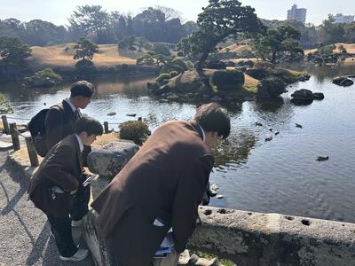 | ↓水前寺成趣園の視察 (樹木観察をしました) |