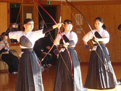 本校は校内に弓道場がなく、生徒達は毎日片道5kmの大津町の弓道場まで、雨の日も風の日も毎日自転車で練習に向かっています。また弓道の経験のない職員が顧問をしているため練習なども自分たちで考え、弓道場にいらっしゃる一般の方から技術的な指導を仰いでおります。そんな中、今回このような結果を残せたことは本当に素晴らしいことだと思います。