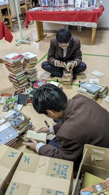 きれいな使いやすい図書館を保つ上で欠かせない、古本の廃棄作業。お疲れさまでした!