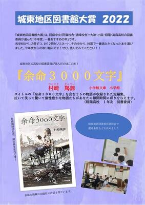 「城東地区図書館大賞」は、阿蘇中央(阿蘇校舎・清峰校舎)・大津・小国・高森・翔陽の図書委員が選んだ、今年度、一番おすすめの本です。各学校から2冊ずつ、計12冊を選び、その中からさらに投票で一番読みたくなった本を選びました。今年度の大賞には、本校1年次生Yくんが選んだおすすめの本『余命3000文字』が選ばれました!