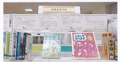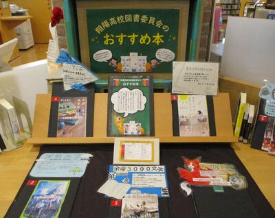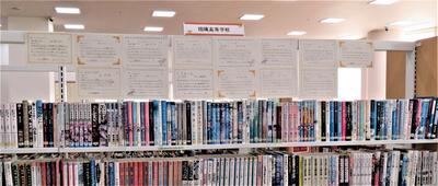 秋の読書週間にあわせて10月末まで校内に展示していましたが、校内だけの展示ではもったいないので、おおづ図書館のYAコーナーに展示させていただくことになりました。