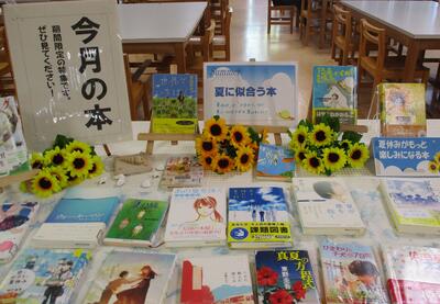 7月の「今月の本」コーナーは、「夏に似合う本」を展示しています。ひまわり、夏休み、甲子園・・・などなど夏にぴったりな本を図書委員が探してきました。「夏は暑くて嫌だ!」という人も涼みながら夏を楽しんでみませんか?