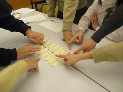 最初は緊張していた本校生。しかし、他校の図書委員たちと自己紹介をするうちに次第に打ち解けて、堂々と紹介していました。中には班代表としてみんなの前で発表した人もいます!
