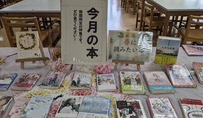 4月の「今月の本」コーナーは、「春に似合う本」をテーマにした本の展示をしています。