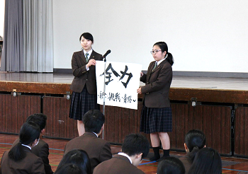 これから進路試験に向かう3年次生に向けて、校長先生、進路指導部、年次主任の先生方から激励の言葉をいただきました。