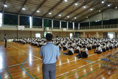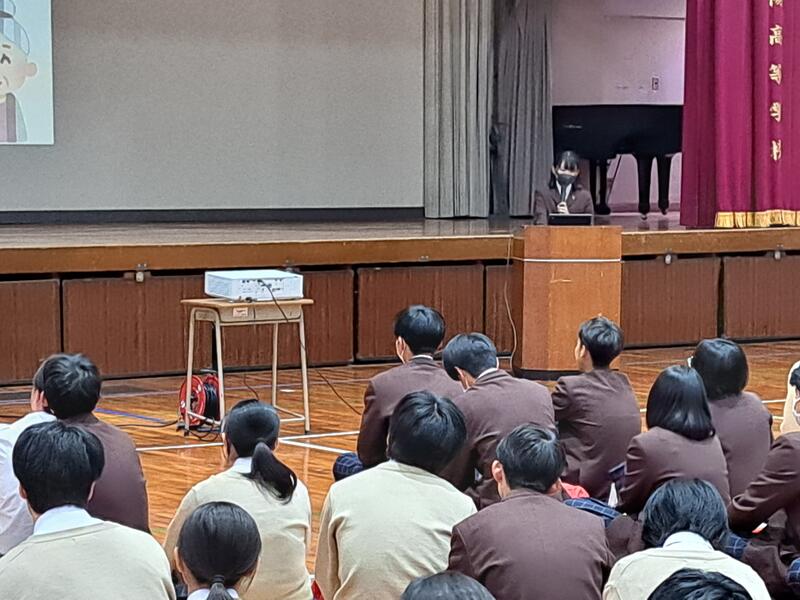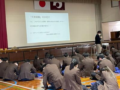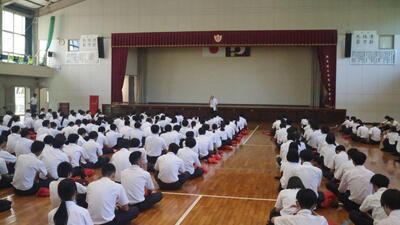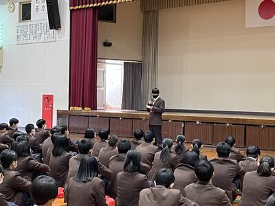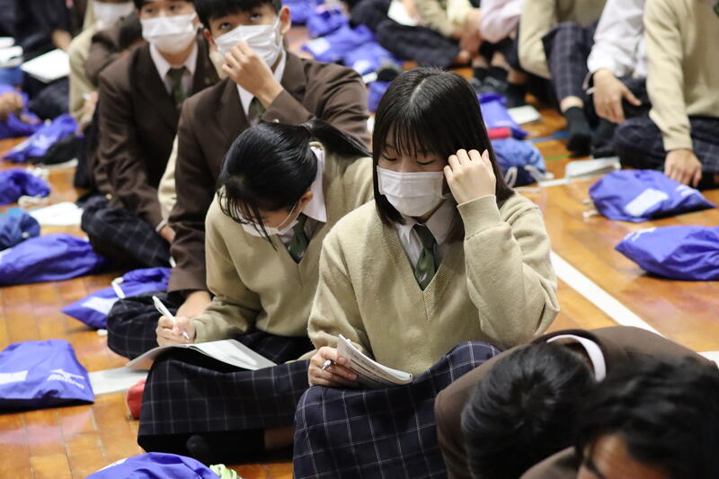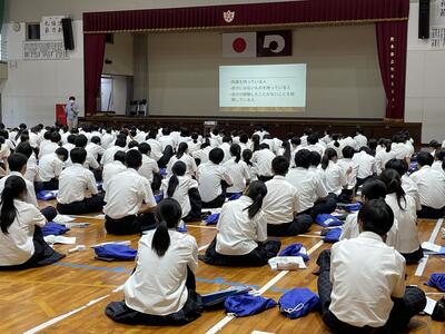 生徒たちも、楽しみながら真剣にお話に耳を傾けていました。皆さんは、中石先生のお話からどんなことに気づきましたか?何を考え、今後の行動にどう生かしますか?
