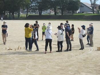 9月23日(土)天候に恵まれ3年振りに育友会レクリエーションを実施しました。今年は、コロナ禍のなかで密にならない競技として「モルック」に取り組みました。大津町が推進している「モルック」は、誰もが初めての体験ながら夢中になってしまう楽しい競技でした。参加者は約50名でしたが、皆さん懸命に競技に取り組んでいました。チームは混合編成チームで老若男女誰もが楽しめる競技として、来年度も是非実施してほしいという意見が早くも聞かれました。