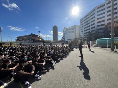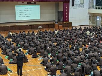 激励会では、古閑校長ほか、元田人権教育推進部長、藤本指導主事、三浦年次主任の4名が、激励や試験当日の準備について話されました。将来を決める試験を目前に控え、生徒達の気持ちも引き締まってきました。