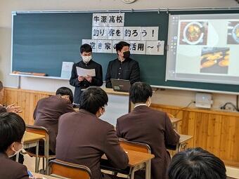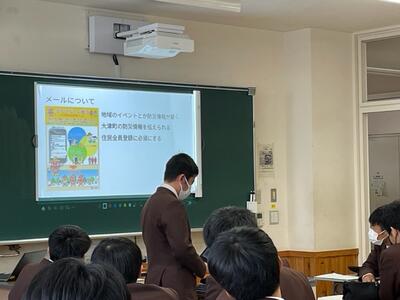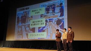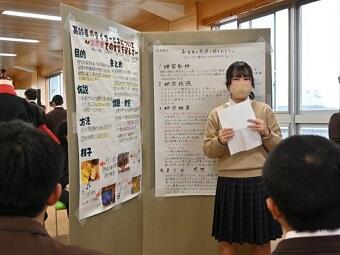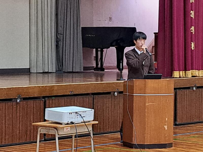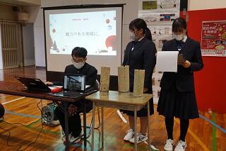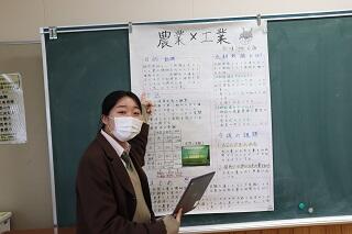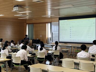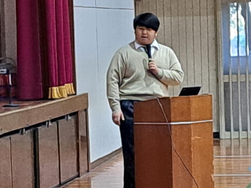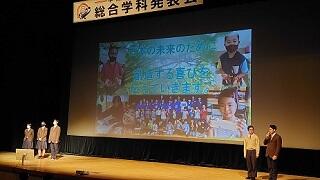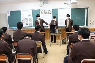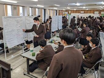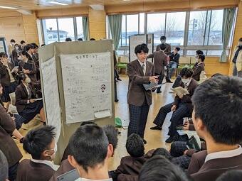 各クラスの代表者が学年生徒の前でプレゼン発表を行いました。