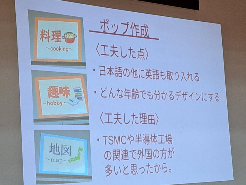 今日はその中間発表会ということで今まで取り組んだことやこれから取り組むことなどを発表しました。