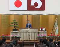 同窓会からは新たな門出をお祝いするとともに、卒業生に卒業記念品として卒業証書を入れる丸筒が贈呈されました。