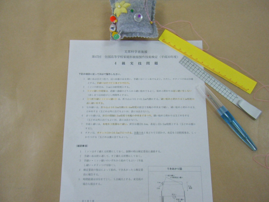 家庭系列3年次生20人が、被服2級検定に挑戦しました。