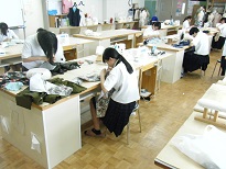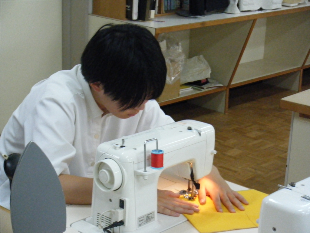 35分間にミシン(図案縫い、直線縫い、三つ折り)と4種の手縫い(なみ縫い、まつり縫い、半返し縫い、ボタン付け)を全国で指定された基準どおりに縫うというものです。