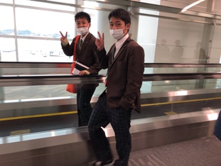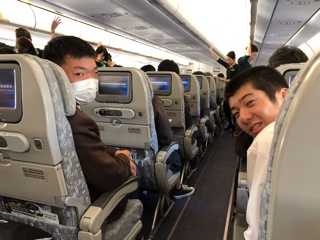 飛行機に乗るまでも様々なルールがあり大変です。みんなで声を掛け合って、なんとか保安検査と入国審査を終えました。フライト時間は2時間半。機内食も楽しみです!とっても可愛い飛行機に乗って行きます!