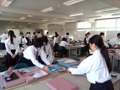 3年生の商業系列生徒たちは、本日も「総合実践」の授業で文化祭に向けた取り組みを行いました。