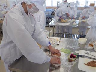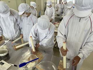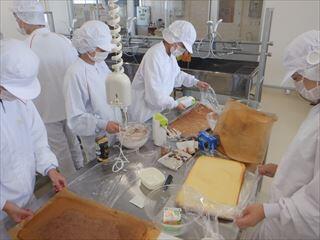 農業系列食品製造の3年次生徒が、「ロールケーキ」を製造しました。