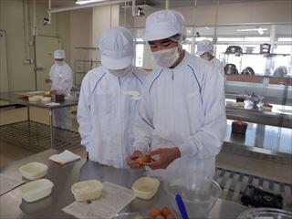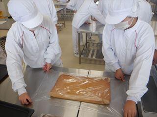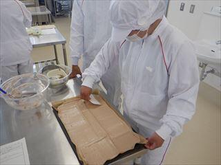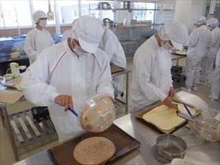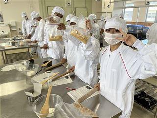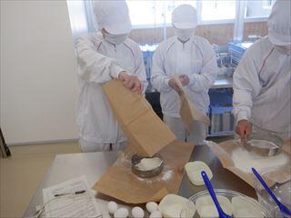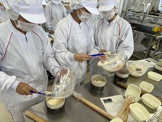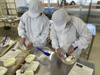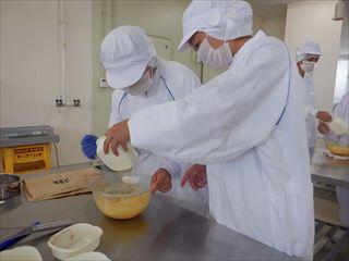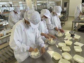 農業系列食品製造の3年次生徒が、「ベイクドチーズケーキ」を製造しました。