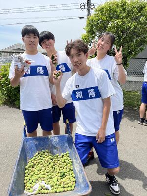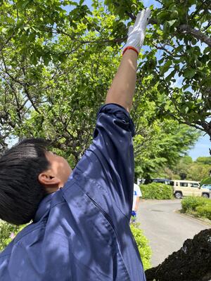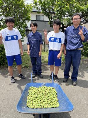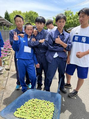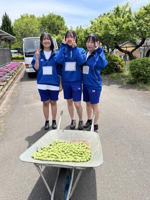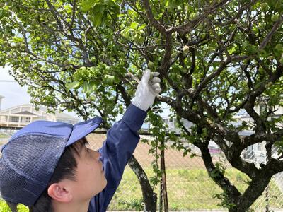 農業系列(園芸・造園)を選択している3年次の生徒たちで校内の梅を収穫しました!