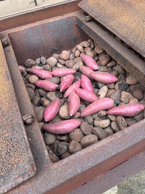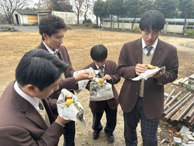 3年次オープン科目「地域資源活用」では、焼き芋づくりを行いました。