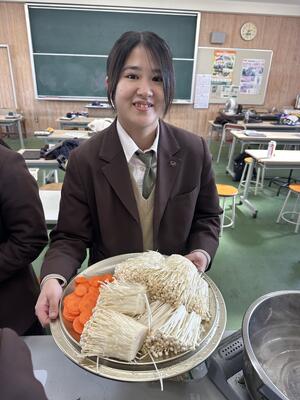 3年次オープン科目「生物活用」では、今年最後の授業で鍋作りを行いました。