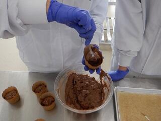 食品製造β選択の3年次生全員が、「チョコレートマフィン」を製造しました。