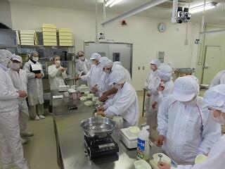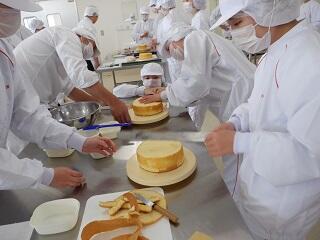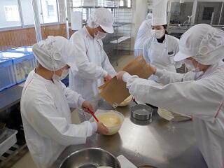 農業系列食品製造の3年次生徒が、「ベイクドチーズケーキ」を製造しました。
