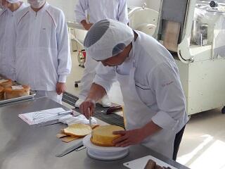 講師として、「ヴィー・エマーブル(光の森店)」より、西田様と吉野様(両名とも本校卒業)を招き、生クリームデコレーションケーキの製造を指導していただきました。