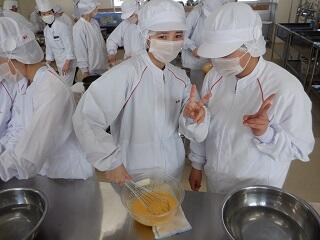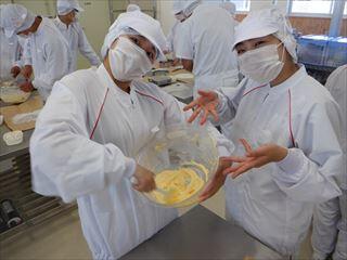 農業系列食品製造2年次生が、食品製造αの授業で、『シフォンケーキ』の製造を行いました。
