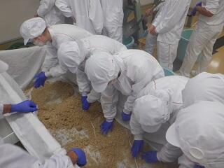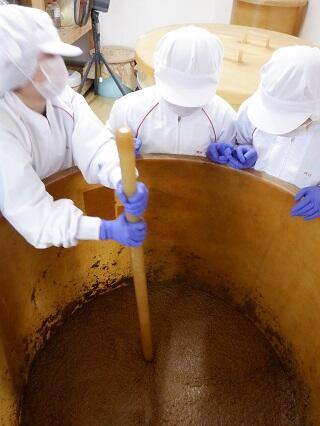 某飲食店に「味噌は日本人の宝物」と掲示されていますが、熊本県民にとっても「麦味噌」は食卓に切手は切り離せない大切なものです!生徒たちは、麹の仕込みから混合、熟成までを行い、普段食べている味噌がこのように作られていることに感動していました。