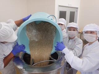 農業系列食品製造の人気商品「麦味噌」の仕込みを行いました!