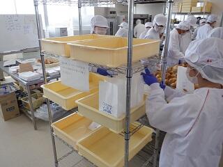 200袋の販売を目標に、みんなで協力して実習に臨みました。一袋に3個詰めて、昼休みに販売を開始。チャイムと同時にたくさんの生徒や先生方が中庭に移動、瞬く間に行列ができました。おかげさまで、見事に目標を達成!!系列として本当に充実した経験ができたと思います(生徒の皆さん、お疲れさまでした)。ご購入いただいた皆様、ありがとうございました。系列の生徒や職員まで、感想をお聞かせくださ~~~い。