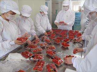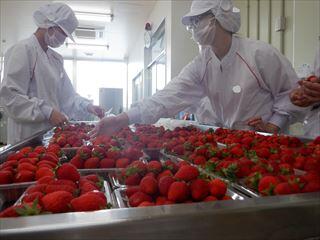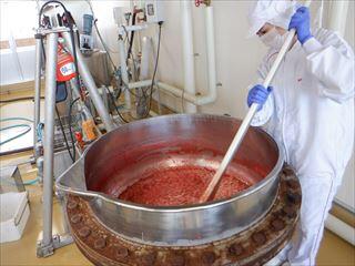 今年も真っ赤なイチゴが届き、下処理を行い、加熱濃縮した後、瓶に充填を行いました。