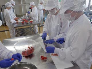5月9日(木)の総合実習食品製造βの授業で、3年次生が販売用の「イチゴジャム」の製造を行いました。