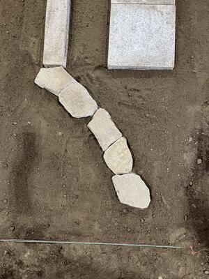 カーブに合わせて石の面を合わせていきます。高さもすべて同じにしなくてはいけません。
