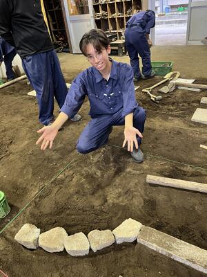2年生の総合実習では3級技能士(造園)合格に向けて本格的に練習を開始しました!