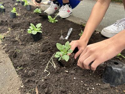 グリーンデザインで学んだように、自分たちで千鳥植えにしたり、間隔を考えて定植することができました!沢山の花が咲くのを楽しみにしたいと思います