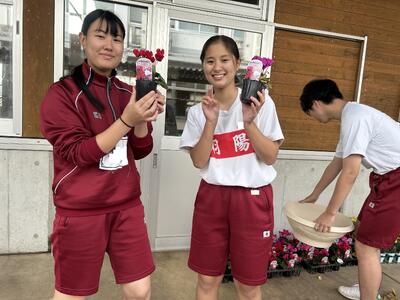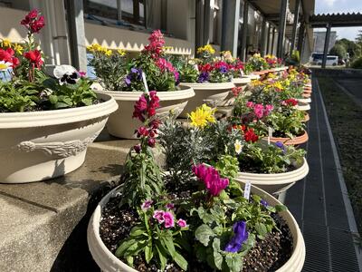 3年次の選択科目「ガーデニング」で校内の花壇にマリーゴールドを定植しました。