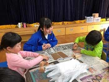 本校生徒達は子ども達と上手にコミュニケーションを取り、短い時間の中でも楽しく会話