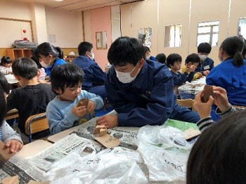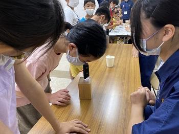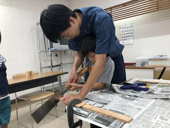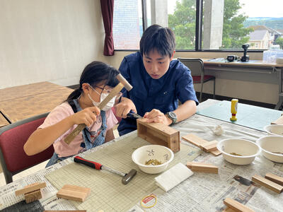 今回は木を使った実験や、ものづくり体験として筆箱やペン立て、ネックレスなどを参加者に作ってもらいました。また、のこぎりの使い方も翔陽生が丁寧に教え、安全に木材を切り、釘を打ち込むなど初めて体験する参加者も多くいらっしゃいました。みなさん完成後はとても喜んでくださいました。また来年度も開催したいと思います。