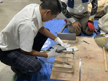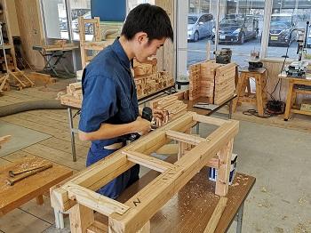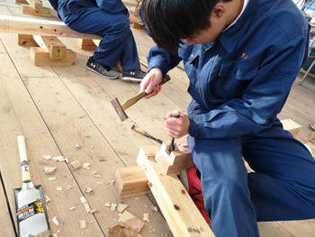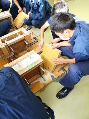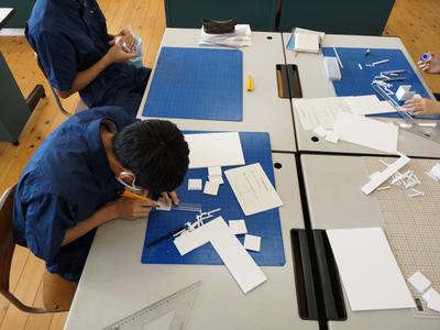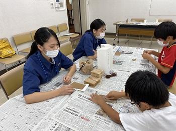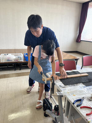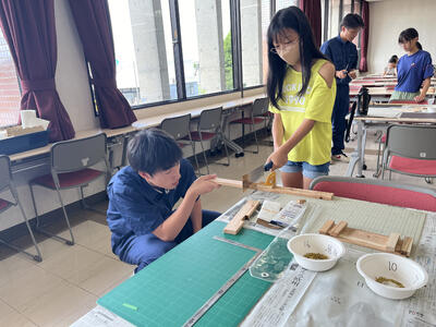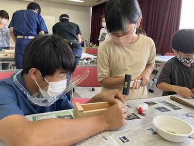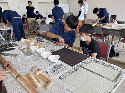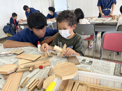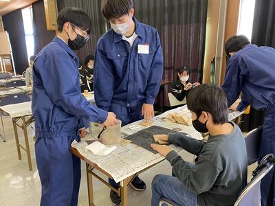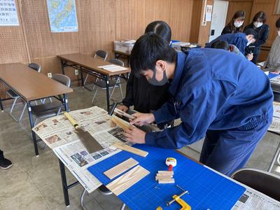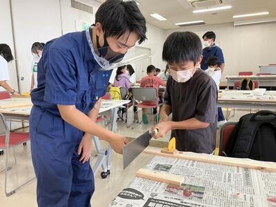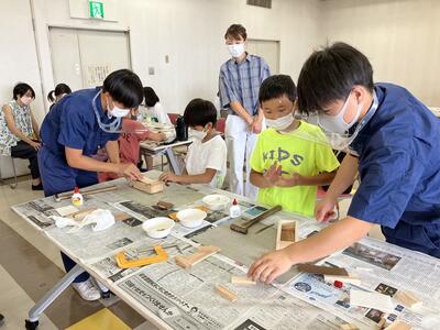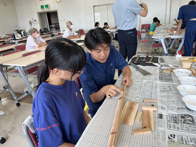 本校の工業系列建築を学ぶ生徒達が先生役として参加し、作品完成までをしっかりと