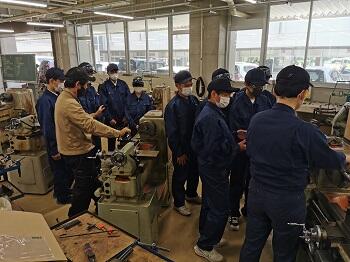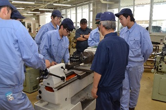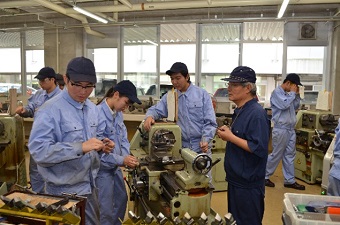 ものづくりマイスターによる実技指導「機械加工(普通)旋盤作業」が行われました。