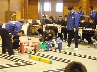 10月21日(日)八代工業高等学校を会場で実施されたジャパンマイコンカーラリー2019熊本県大会に参加しました。工業系列・機械の総合的な学習の時間で生徒8名が4台のマイコンカーを製作。初心者向けのBASICクラスに出場しました。4台中3台が完走することができました。
