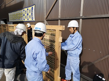 ※最後の仕上げは、高校生もやりました。この壁は、今後の現場見学会などで活用されるそうです。