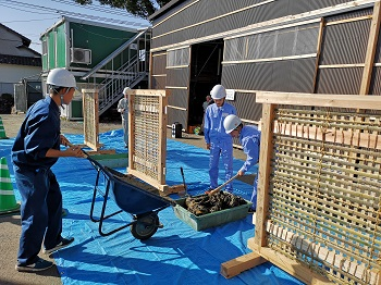 ※3年生の2人は、土壁にする枠の製作からお手伝いをしました。